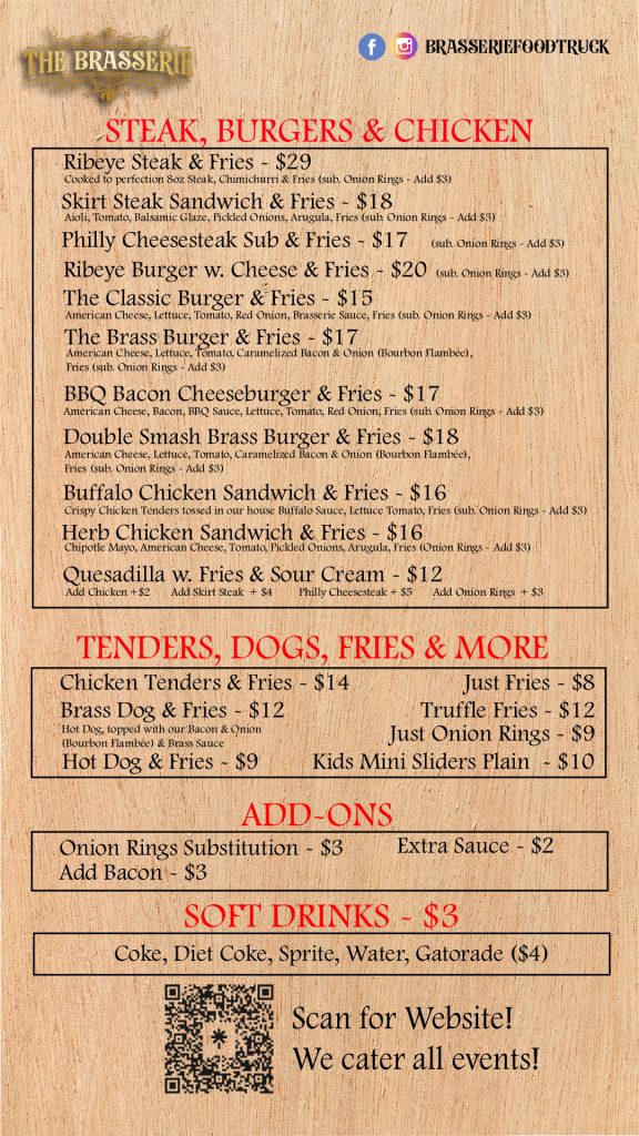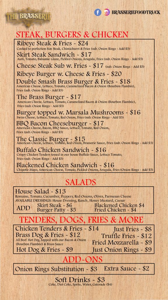 The Brasserie Food Truck – Menu